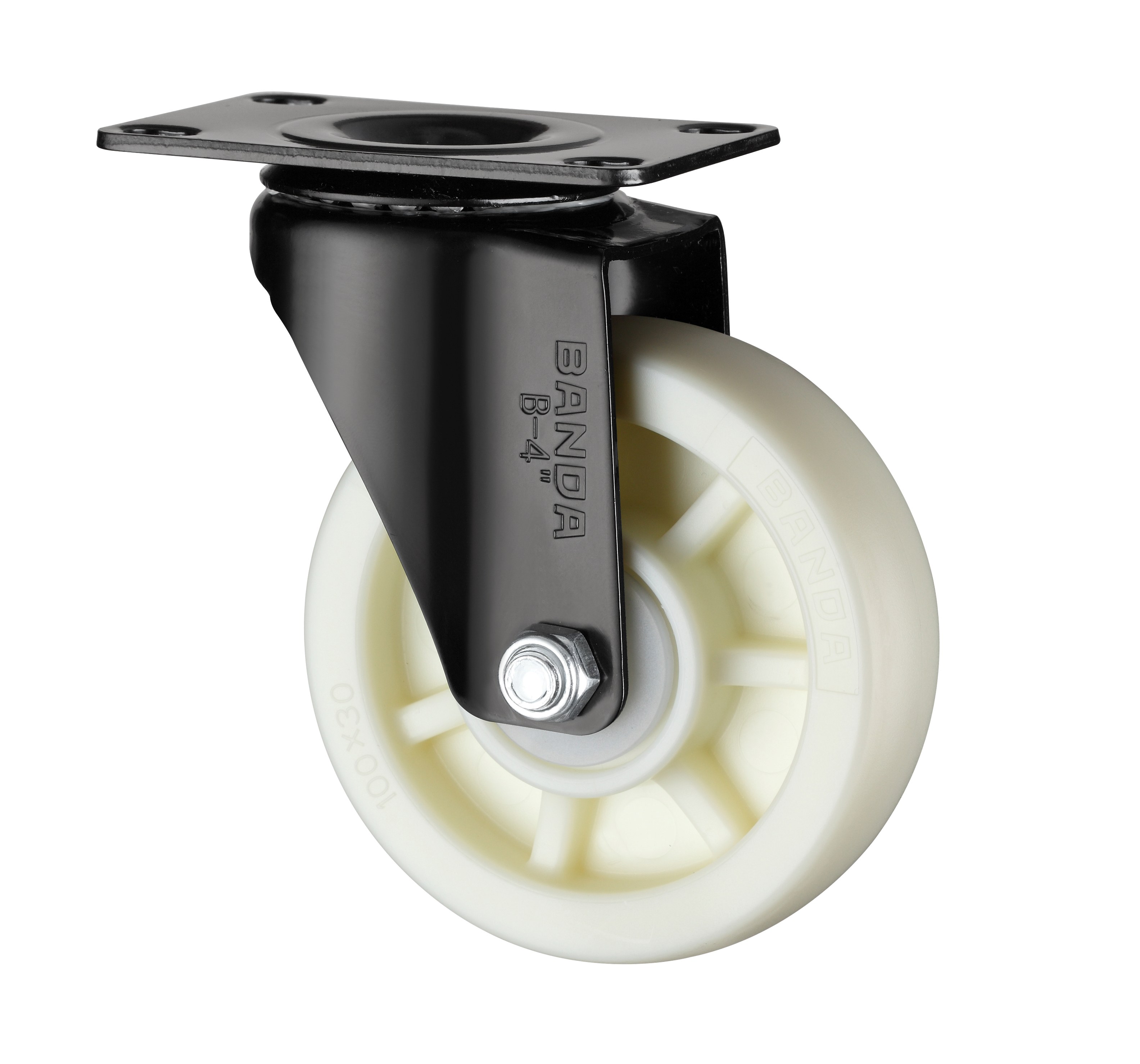 BANDA-B1-4寸中型平底五金双刹乳白色PP轮