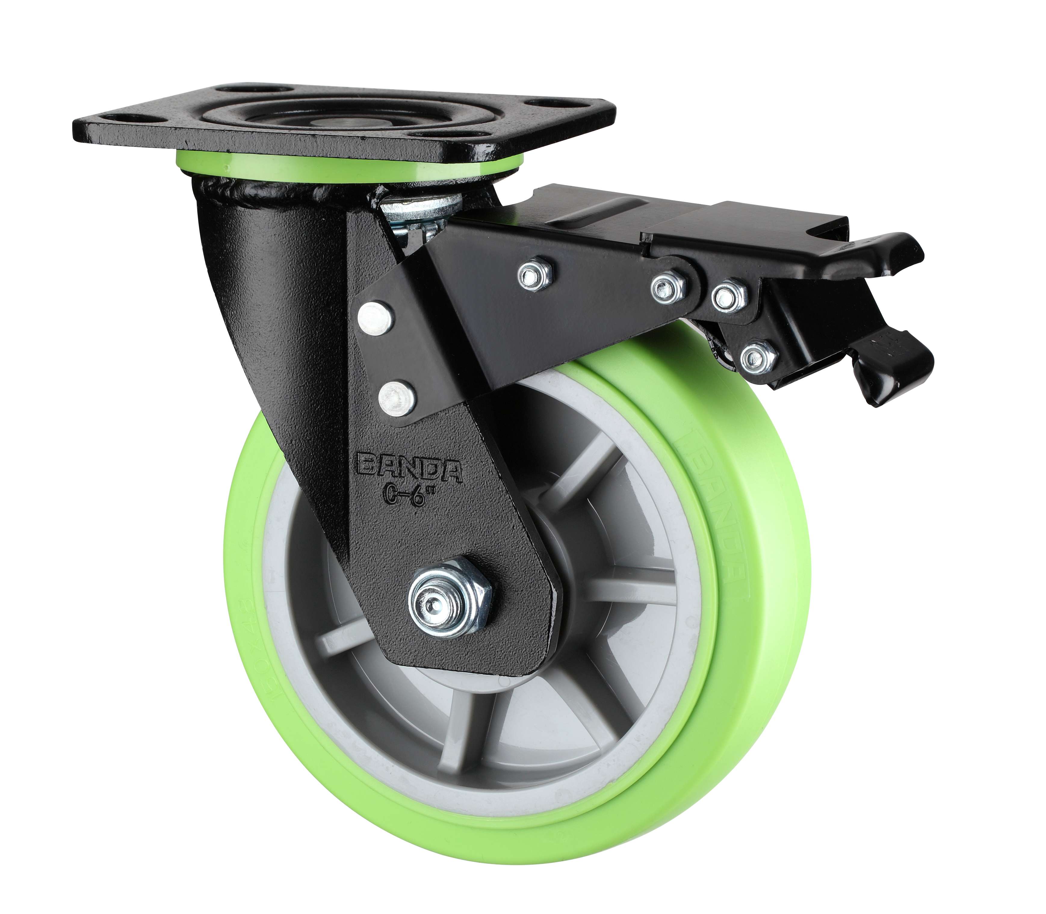 BANDA-C2-6寸重型平底五金双刹荧光绿TPE轮